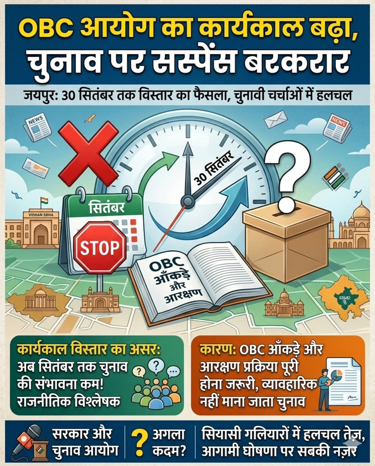 राज्य अन्य पिछड़ा आयोग का कार्यकाल सितंबर तक फिर बढ़ा, चुनाव पर सस्पेंस बरकरार