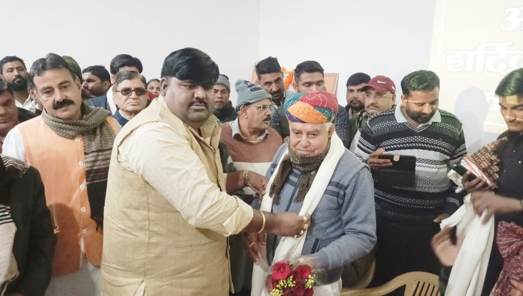 भाजपा विधायक ताराचन्द सारस्वत का शाल और साफा पहनाकर किया स्वागत