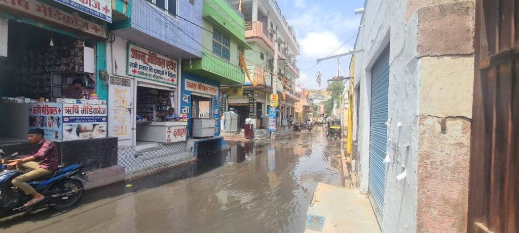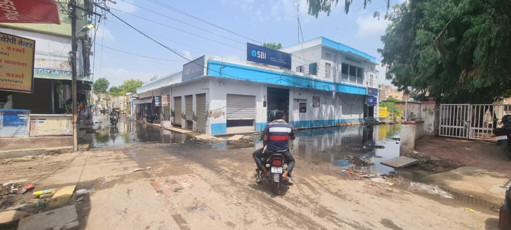 स्टेट बैंक ऑफ इंडिया के सामने जलभराव की स्थिति