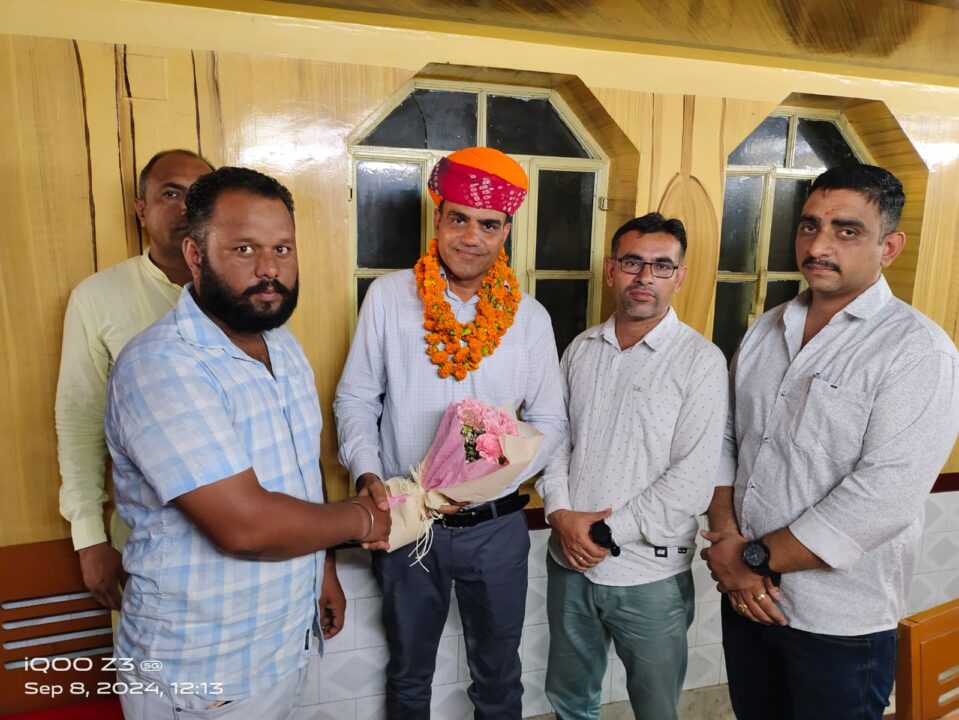 इस अवसर पर पवन होटल में पुरस्कृत शिक्षक फोरम के जयपाल सोनी व मनोज कुमार लखारा ने साफा पहनाकर स्वागत किया। इस अवसर पर पवन सिंह, राहुल दानोदिया, सुनील शर्मा आदि उपस्थित रहे। जेपीएस स्कूल में स्वागत समारोह में निदेशक कुम्भाराम घिंटाला ने साफा पहनाकर उनका अभिनंदन किया।
