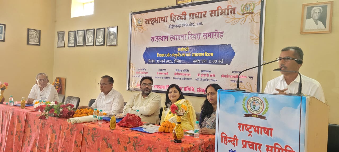 The Khabar Xpress 30 मार्च 2025। राजस्थान स्थापना दिवस के अवसर पर राष्ट्र भाषा हिन्दी प्रचार समिति की ओर से आयोजित समारोह में “विरासत और संस्कृति का पर्व : राजस्थान दिवस” विषय पर बोलते हुए राजस्थानी भाषा के साहित्यकार डाॅ चेतन स्वामी ने कहा कि राजस्थानी संस्कृति समूचे विश्व को अपने विशिष्ट गुणों के कारण आकर्षित करती है। इस संस्कृति ने हमें, साहित्य, संगीत, मान्यताओं, मर्यादाओं, शिल्प, कला, रीति रिवाज, लोक वैविध्य और भाषा के रूप में अनोमल धरोहर सौंपी है। हमें सारी चेष्टा लगाकर अपनी विरासत के क्षय को रोकना चाहिए।