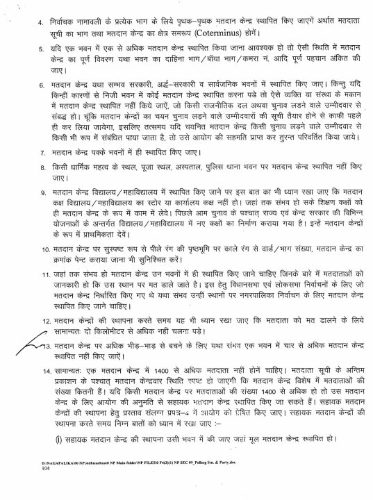 - मतदान केंद्र यथासंभव उसी वार्ड में स्थापित करने,