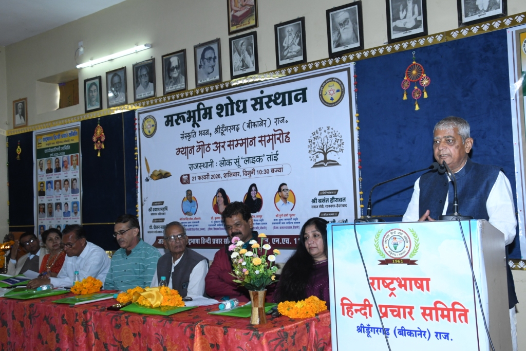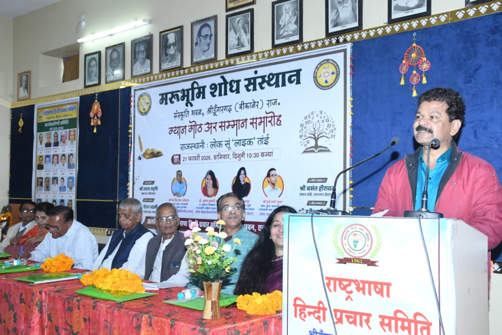 The Khabar Xpress 21 फरवरी 2026। मरूभूमि शोध संस्थान के तत्वावधान में मातृभाषा दिवस अनेक आयोजनों के साथ मनाया गया। राजस्थानी “लोक सू लाइक” तक विषय पर आयोज्य ग्यान गोठ को मुख्य अतिथि के रूप में सम्बोधित करते हुए राजस्थानी आलोचक डॉ. चेतन स्वामी ने कहा कि सोशल मीडिया के माध्यम से लगभग पन्द्रह करोड़ लोगों तक राजस्थानी कंटेंट पहुंच रहा है। राजस्थानी भाषा बोलने वाले 12 करोड़ माने जाते हैं पर राजस्थानी कंटेंट को हरियाणा, पंजाब और मालवा के लोगों द्वारा भी देखा जाता है।