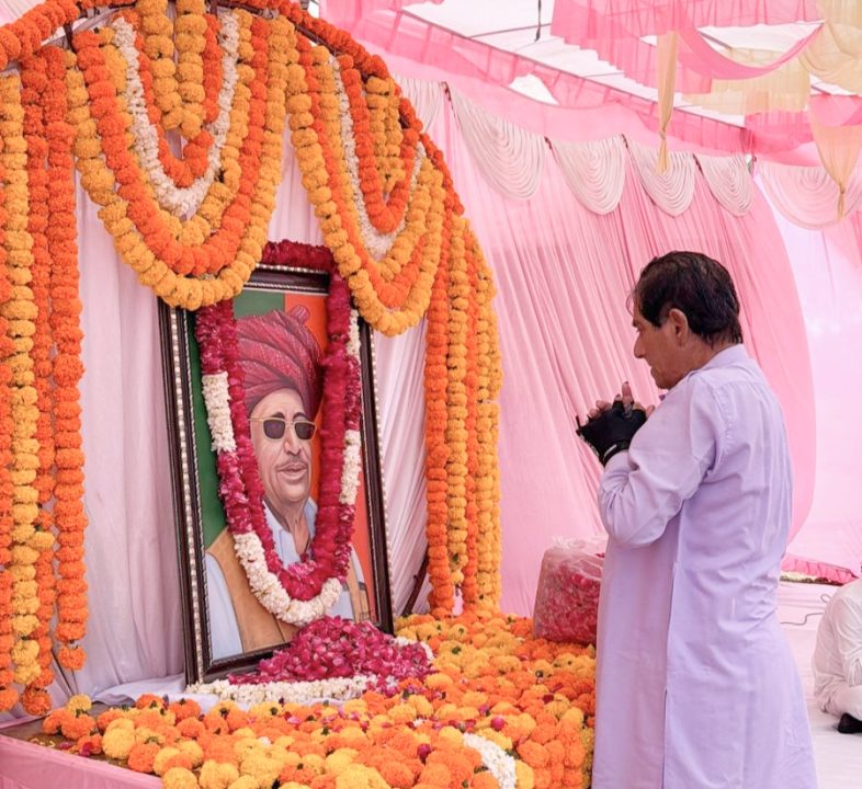 The Khabar Xpress 07 अप्रेल 2026 श्रीडूंगरगढ़। पूर्व विधायक नेतोजी के नाम से विख्यात सच्चे जननेता स्व. किशनाराम नाई की पहली बरसी पर आज मंगलवार को नेतोजी की बाड़ी (केआर फार्म हाउस) में श्रद्धांजलि सभा का आयोजन रखा गया। स्वर्गीय किशनाराम नाई मेमोरियल ट्रस्ट एवं उनके समर्थकों की ओर से आयोजित श्रद्धांजलि सभा में श्रीडूंगरगढ़ क्षेत्र के विभिन्न गांवों के ग्रामीणों के साथ साथ ज़िले भर से नेता एवं जनप्रतिनिधि पहुंचे और उन्हें श्रद्धांजलि अर्पित की। नेताओ एवं जनप्रतिनिधियों ने उनके साथ के संस्मरण साझा कर उनको याद किया। स्व. किशनाराम नाई को सच्चा जननेता बताया जिन्होंने अपना सम्पूर्ण जीवन सादगी से जीया। इसके अलावा नोहर, भादरा, हनुमानगढ़, बीकानेर, गंगाशहर, नोखा, शाहपुरा, अजमेर, केकड़ी एवं जयपुर में भी अपने नेता को श्रद्धा सुमन अर्पित किये गए।